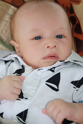 Luke turned 2 months on August 5th - time flies by! We went to the pediatrician for his check up and he is a growing boy - 13 lbs 8 oz (88%), 24 1/2" (94%), 15 1/2" head circumference (37%). He cried a little when getting his shots, but the rest of the afternoon he was sleepy.
